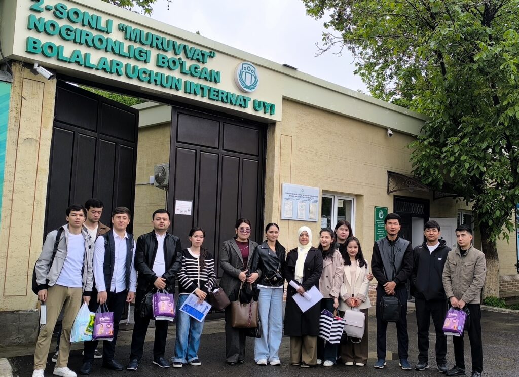Toshkent davlat tibbiyot universiteti Davolash fakulteti 3-bosqich, 326-A guruh talabalari, 1-son “Jamoat salomatligi va sog‘liqni saqlash menejmenti” kafedrasi o‘qituvchisi Mirxamidova S.M. rahbarligida “Muruvvat-2” Toshkent nogironlar uchun bolalar uyi ga tashrif buyurishdi.